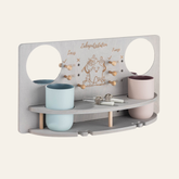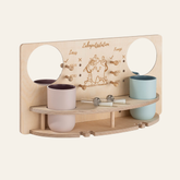 💛 Alles griffbereit: Die Station enthält einen Zahnputzbecher, eine Sanduhr, einen Spiegel und einen Handtuchhalter.
