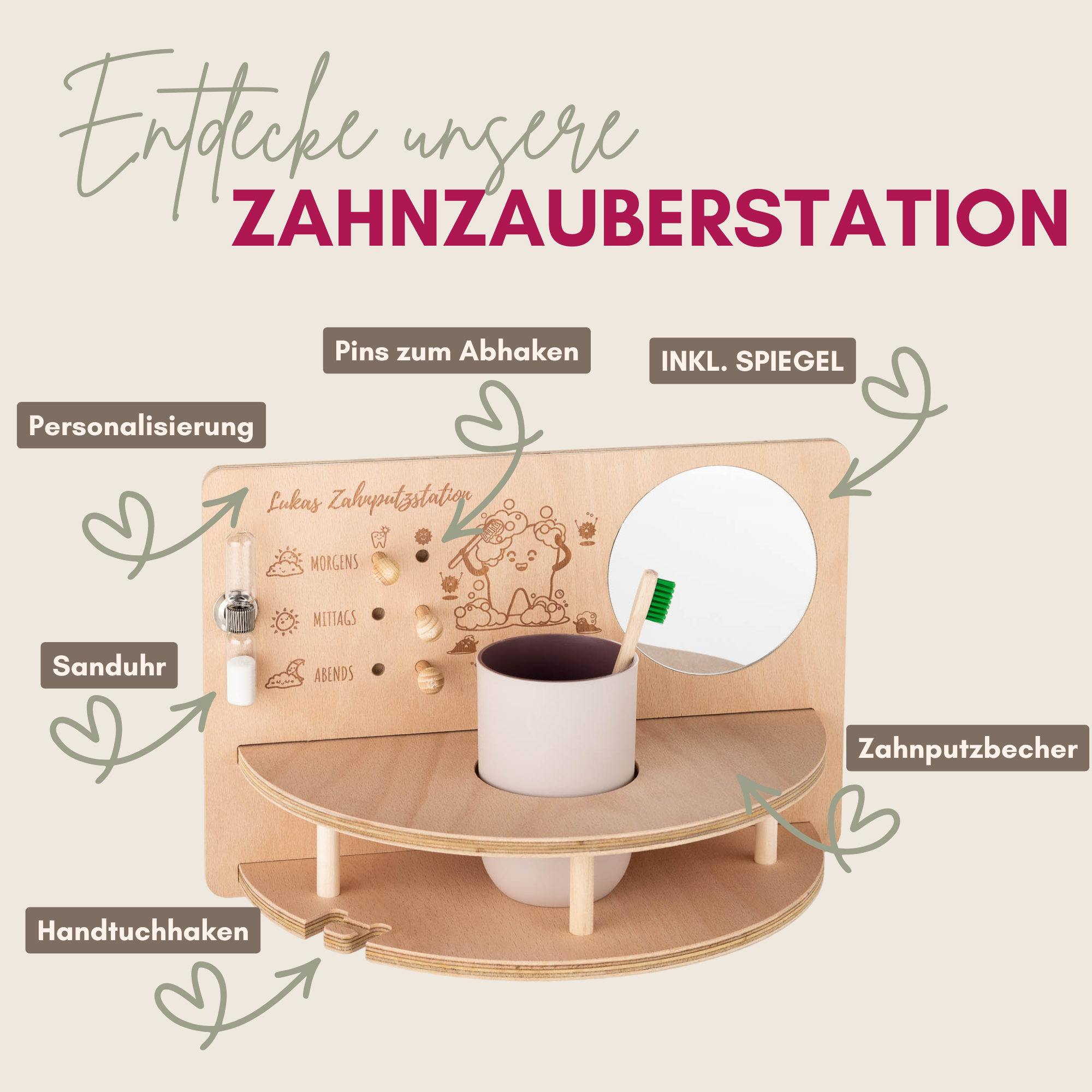 Kennst du das? Das abendliche Zähneputzen endet oft in Diskussionen, die Sanduhr wird ignoriert, und die Motivation ist schnell am Ende. Mit der ZahnZauber Station wird aus der lästigen Pflicht ein zauberhaftes Erlebnis! Stell dir vor, dein Kind freut sich darauf, seine Zähne zu putzen und erledigt diese Aufgabe ganz eigenständig. Die ZahnZauber Station macht aus der täglichen Routine ein spielerisches Ritual, das die Kleinen motiviert und sie wie die "Großen" fühlen lässt.